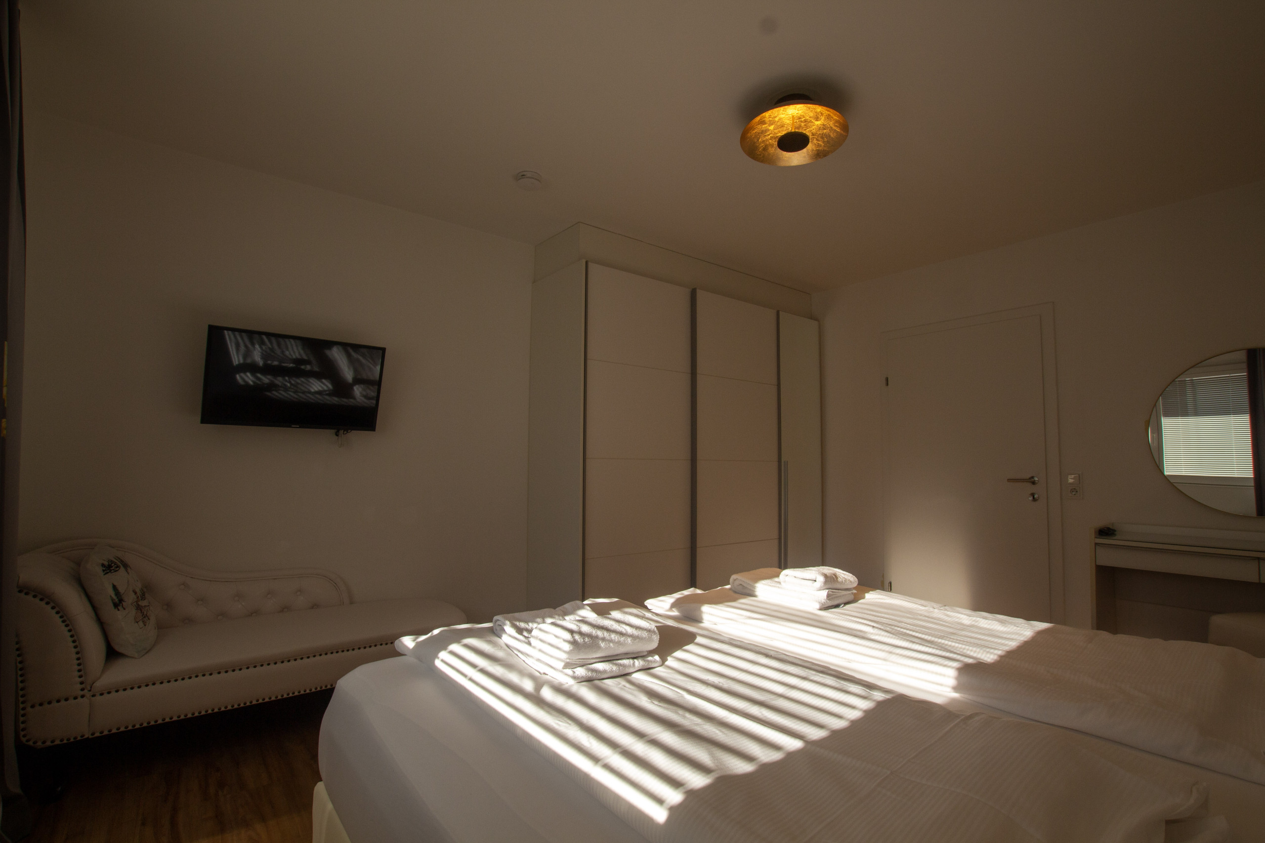 Two stylishly furnished bedrooms with comfortable double beds offer space for up to 4 people and promise restful nights. A room safe is available for your valuables. The apartment has a bathroom with a shower and toilet and an additional separate toilet.