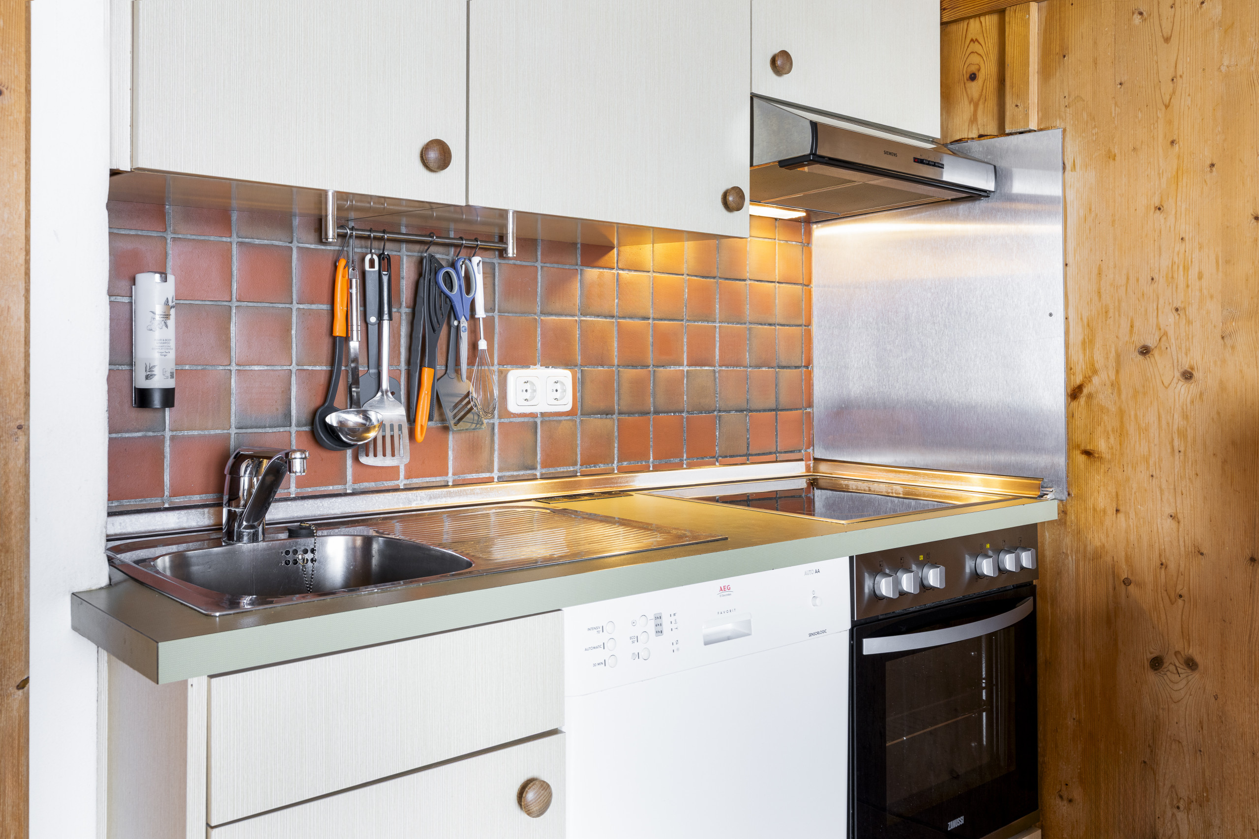• small cooking area with 4 hobs / ceramic hob, oven, dishwasher, toaster, microwave, Nespresso coffee machine and kettle