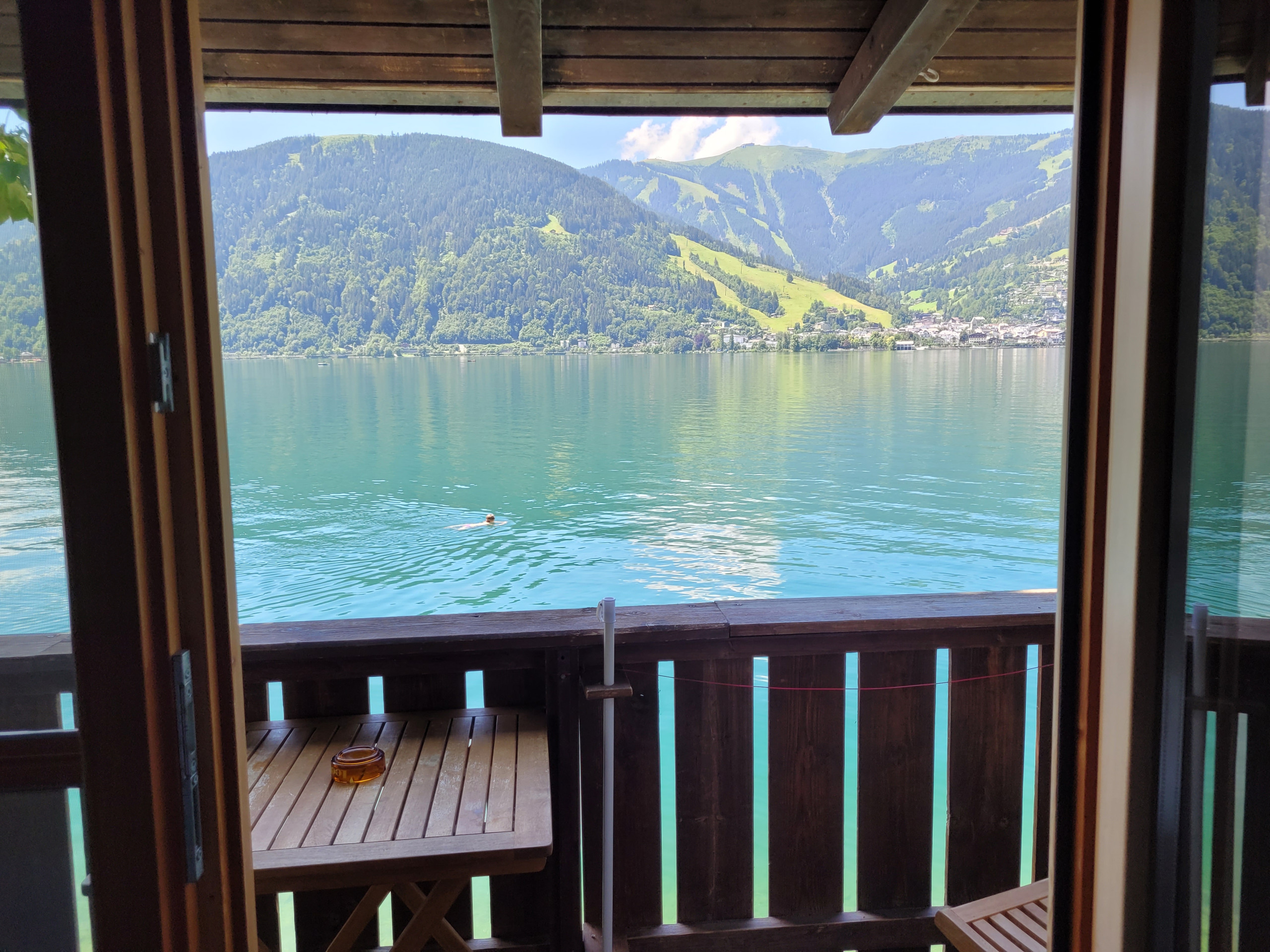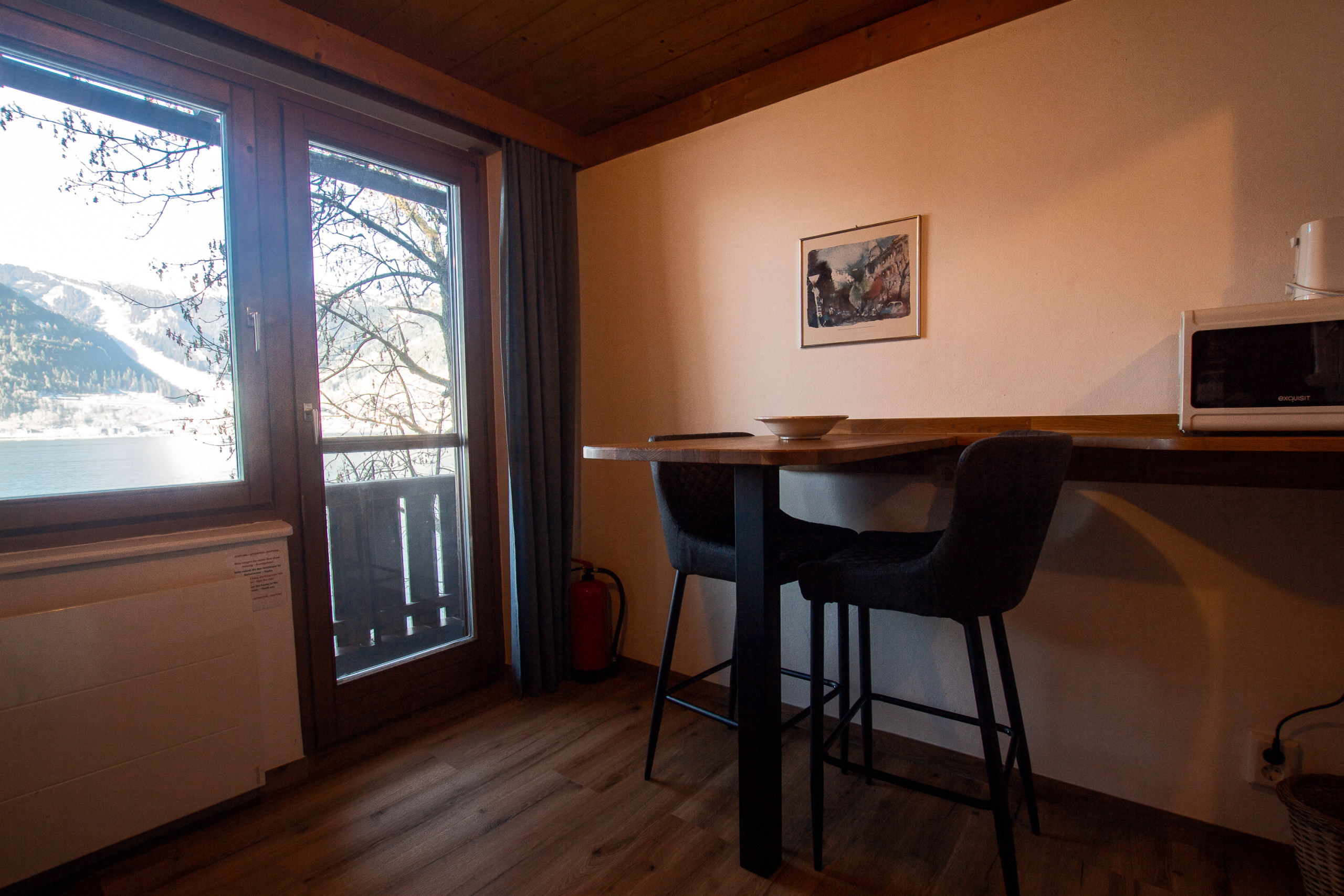 • Large balcony with a view of Kitzsteinhorn as well as a roomy terrace with sun loungers (in summer) and a wonderful panoramic view of the lake