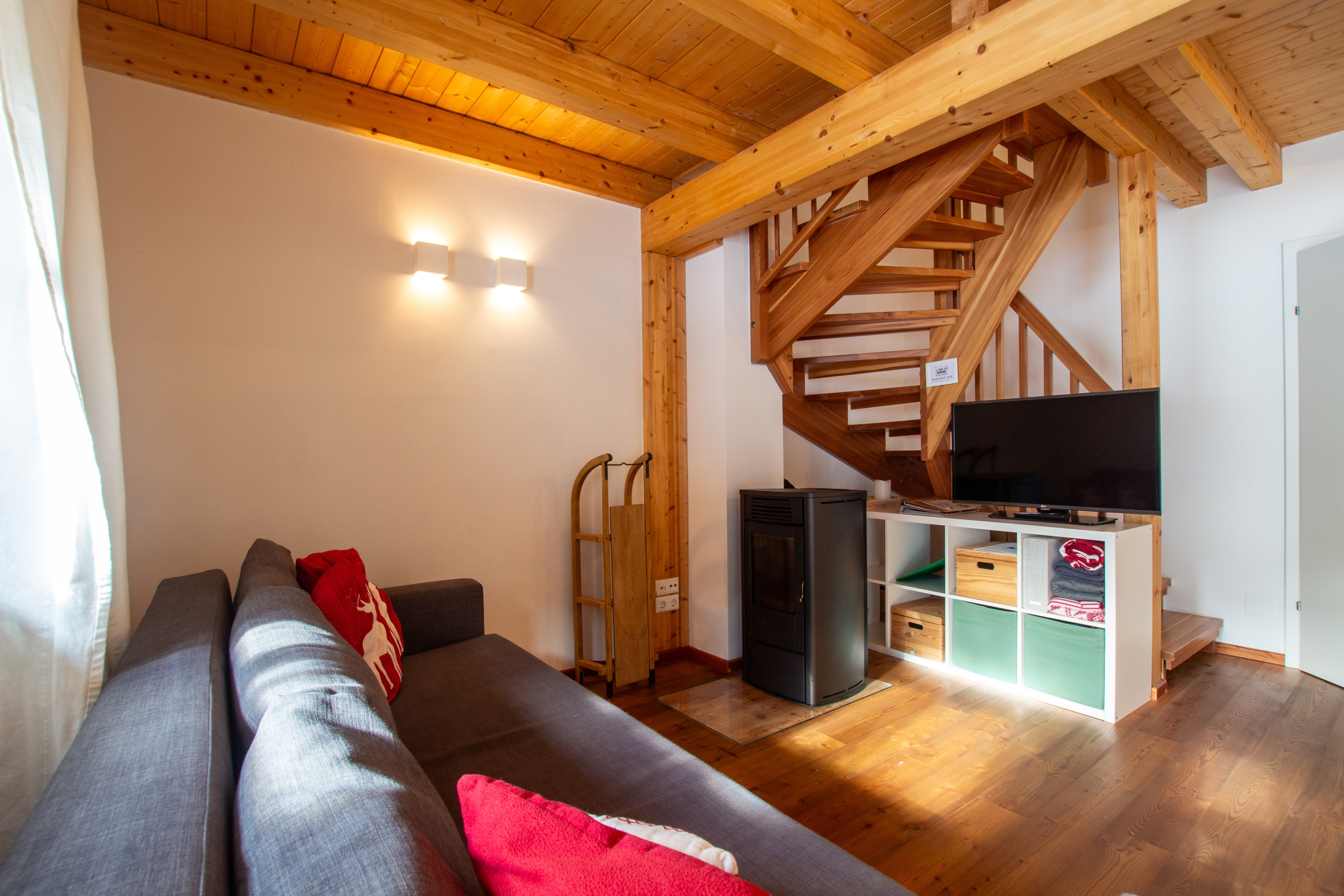 Imagine yourself and your loved ones coming home from a hard yet fulfilling day of skiing or walking, preparing a delicious meal together in the fully equipped kitchen and having a great dinner. Then you enjoy the evening in front of the crackling fire on the cuddly sofa. This is pure relaxation, well deserved!