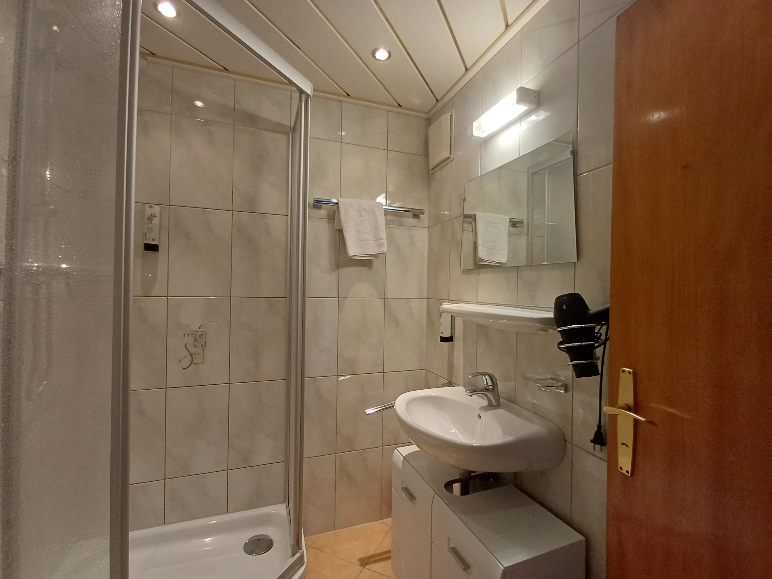 First floor: here you will discover two spacious bedrooms with box spring double beds. One bedroom has a balcony with stunning panoramic alpine mountain views and is equipped with a TV. There is another bathroom with a shower and toilet on the first floor also.