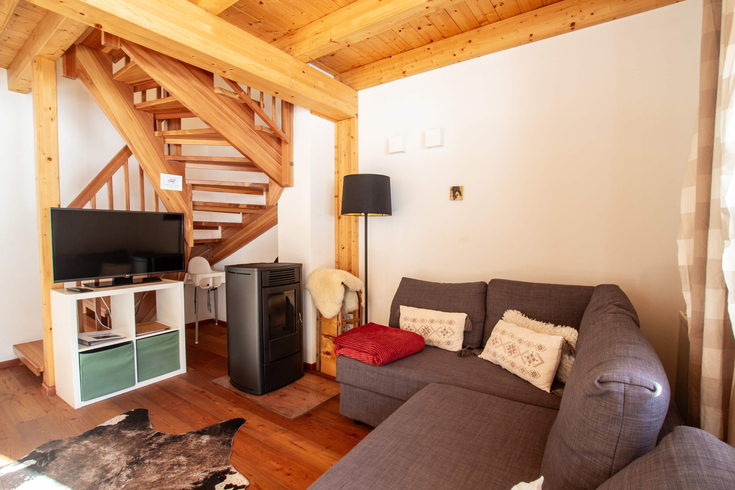 • Wohnzimmer mit Pelletofen für nette Abendstimmung (Pellets werden kostenlos zur Verfügung gestellt)